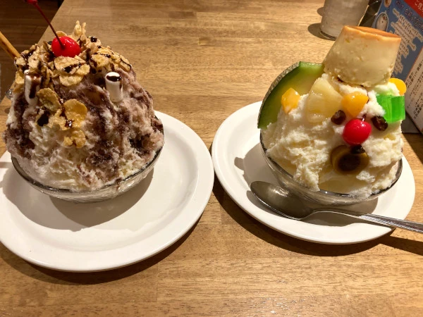 定番の「白熊」は前回いただいたので、今回は、少し趣向を変えて「チョコレート白熊」と「プリン白熊」にしました。