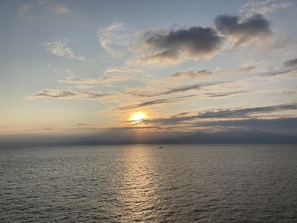 指宿方面から眺める錦江湾の眺めは、鹿児島市街地や桜島からの眺めとはまた違った趣があります。